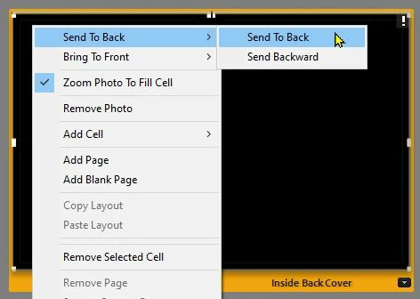4) [Right-Click] the 'Black' photo cell and [Send to Back]. (Take care not to select other template cells!)