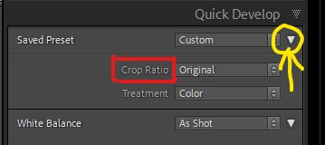 Quick Develop: this has never allowed you to freely modify the crop, but you can impose a chosen "crop ratio" (aspect ratio) here. This option may be currently hidden for you - if so, you can un-collapse the relevant section of the interface with triangular button at right side of the top subpanel: