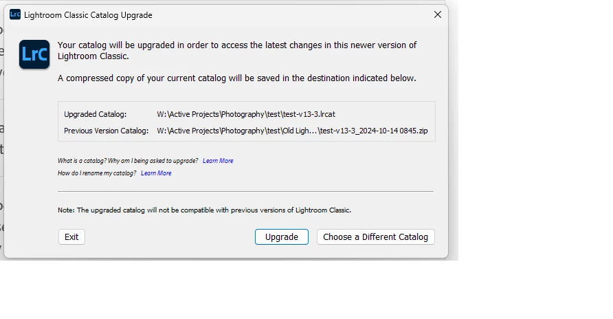 i have just updated to Lightroom classic V14, my catalogue is still v13.3. I did upgrade the catalouge after the update. is this the correct version?