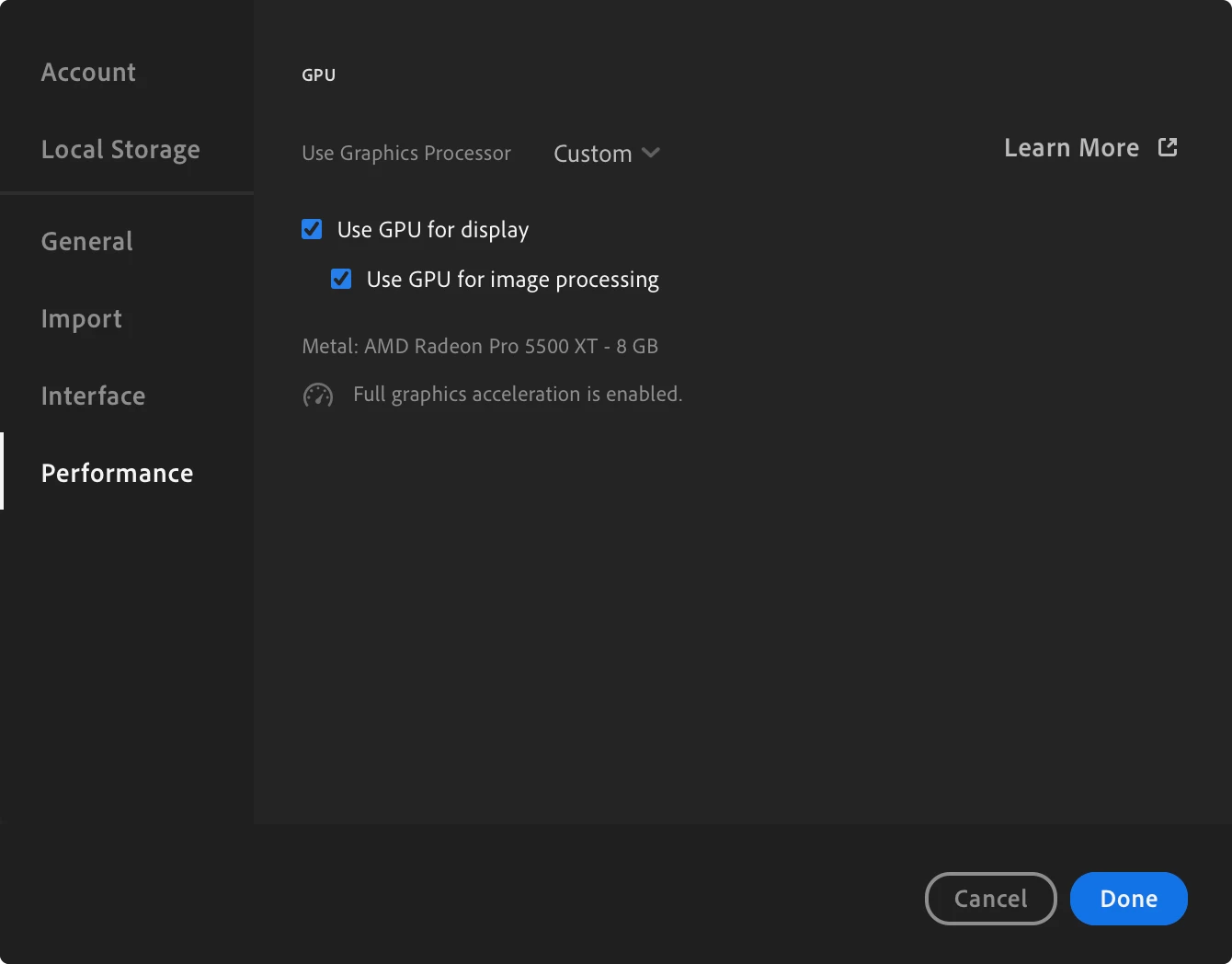 Lightroom Classic won’t fully use GPU Acceleration (2020 27” IMac)