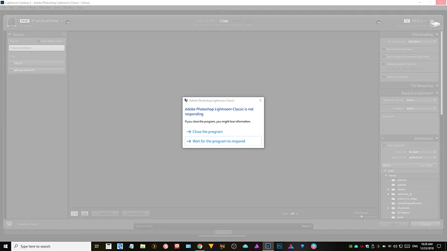 Lightroom crashing on import with pCloud