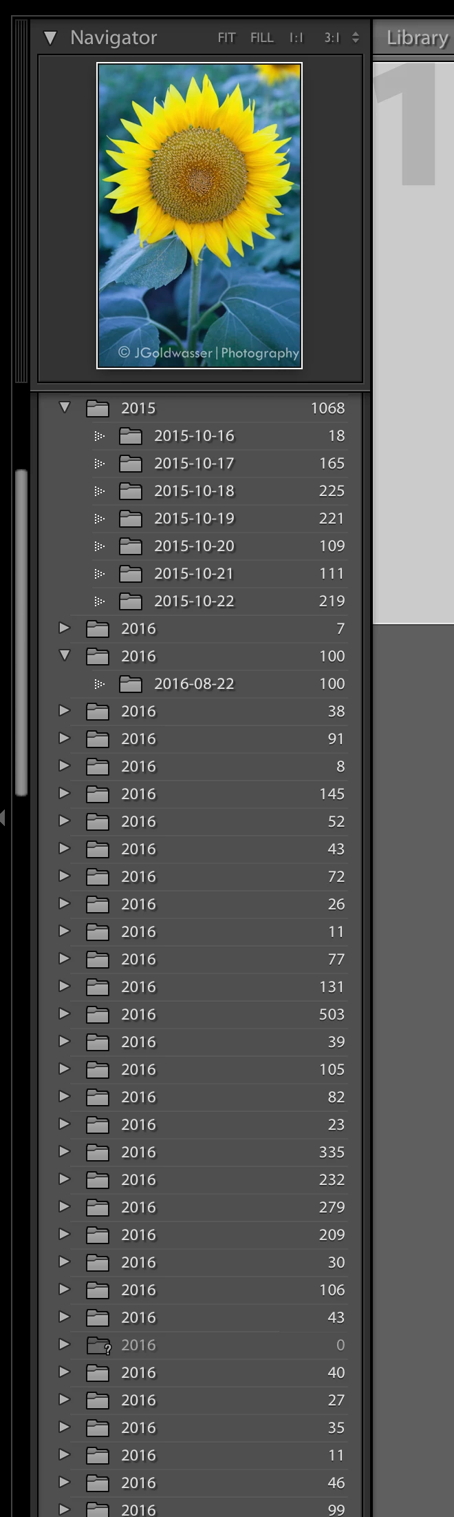 Here is the view of Lightroom showing dates for folders: