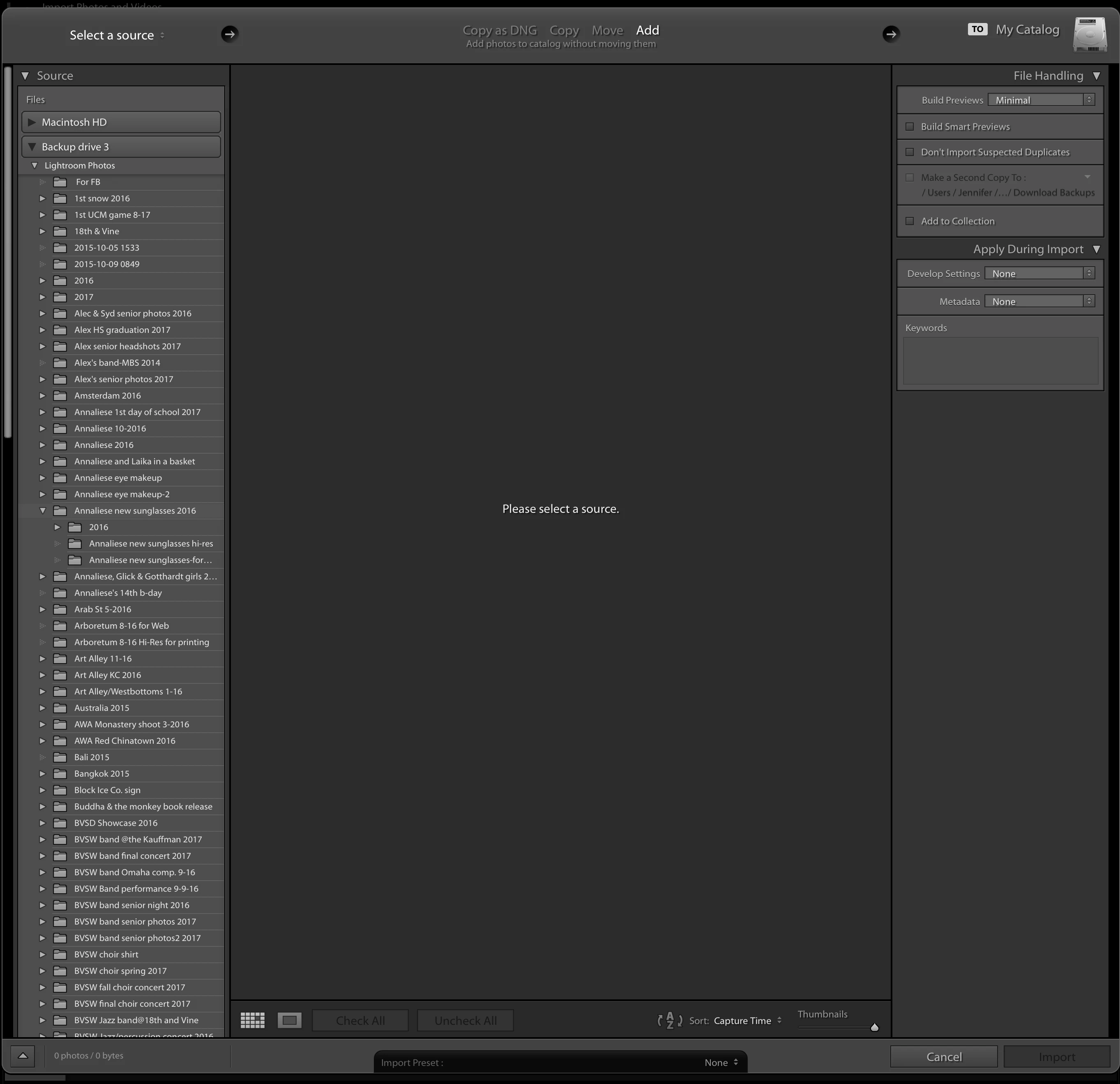 But then I've noticed that Lightroom seems to know the actual folder names that I want it to show when I look to import files into the catalog, as shown in this second view below: