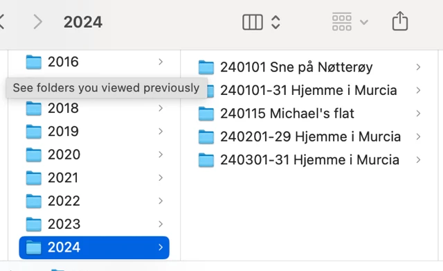 This problem suddenly appeared about a year ago for no reason apparent to me, but possibly caused by me changing something without knowing what I was doing. The problem consists in the names of my year folders suddenly appearing twice in the same name, ref. screenshots: