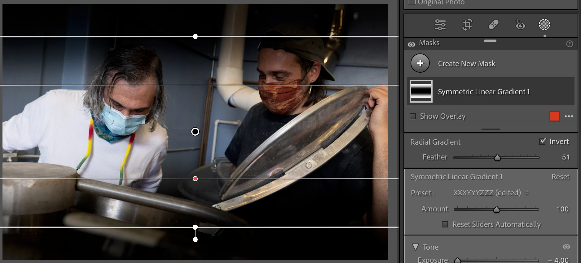 ON1 Photo RAW has this feature and it was a really useful way to accurately mask a section of the image. I suppose one could replicate it with a very large flat radial gradient but I wondered if there was a keyboard modifier that did this to the LR linear gradient that I'm missing or is this something for the next upgrade?