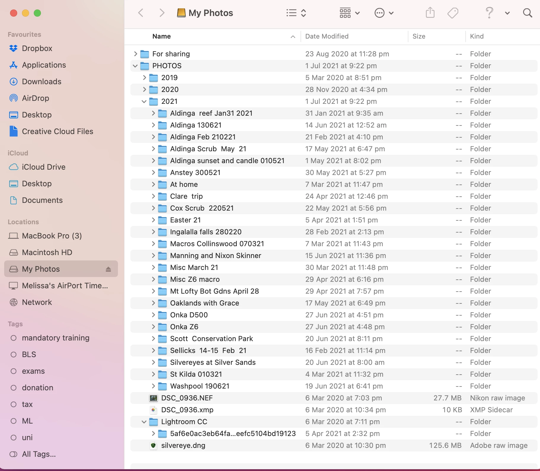 This is a screenshot of my external hard drive (called "My Photos") content in Finder: