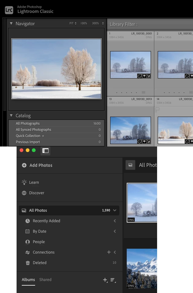 Lightroom Classic is shown in top image and Lightroom Desktop in bottom images. Which does your version look like?