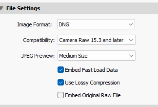 With camera raw 15.3 selected will lead to corrupted Thumbnail and Data Header.