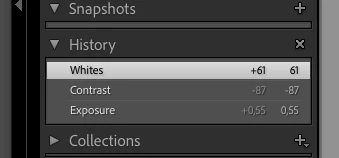 The issue is that there are no "initial step" created in the history panel of this image, so if I apply some adjustments, there are no way in the history panel to click on the initial step and remove all edits. For the original image, I can click the "Import" step in the history to get rid of any adjustments.
