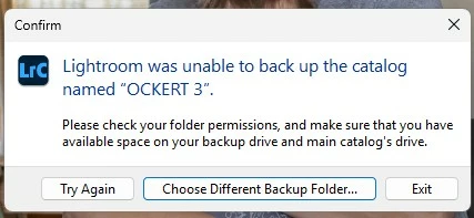 Problem with "Back Up" in Lightroom
