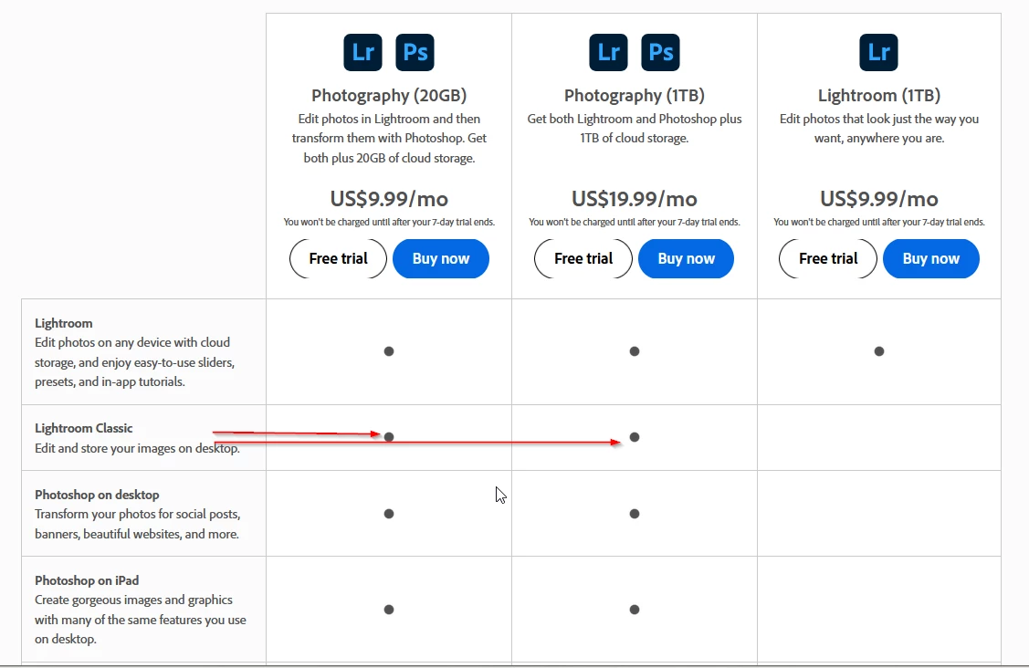Quiero ambiar a plan fotográfico 20 GB pero no queda claro si incluye LR classic o no