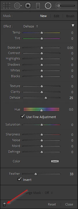 radial filter on/off