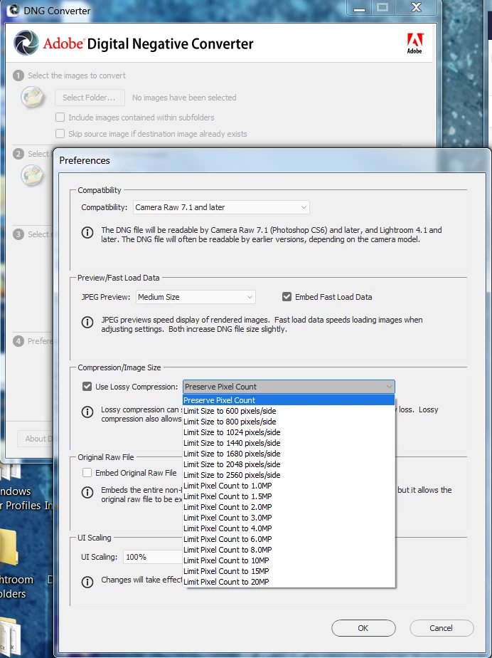 You can also reduce the DNG image size using the Adobe DNG Converter, but you're limited to 20 megapixel maximum size. Too bad Adobe didn't offer more options for larger image sizes!