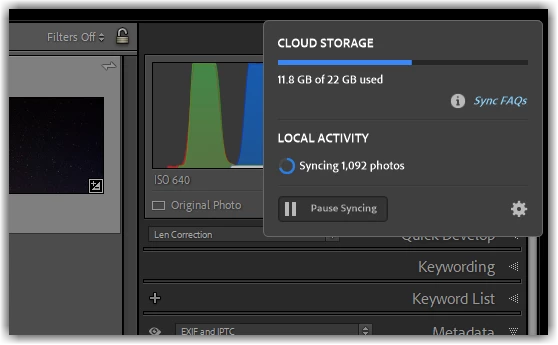 SYNC is stuck in Lightroom Classic without Errors