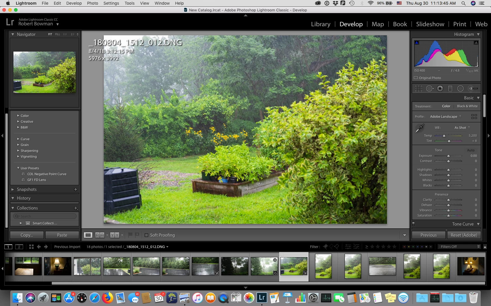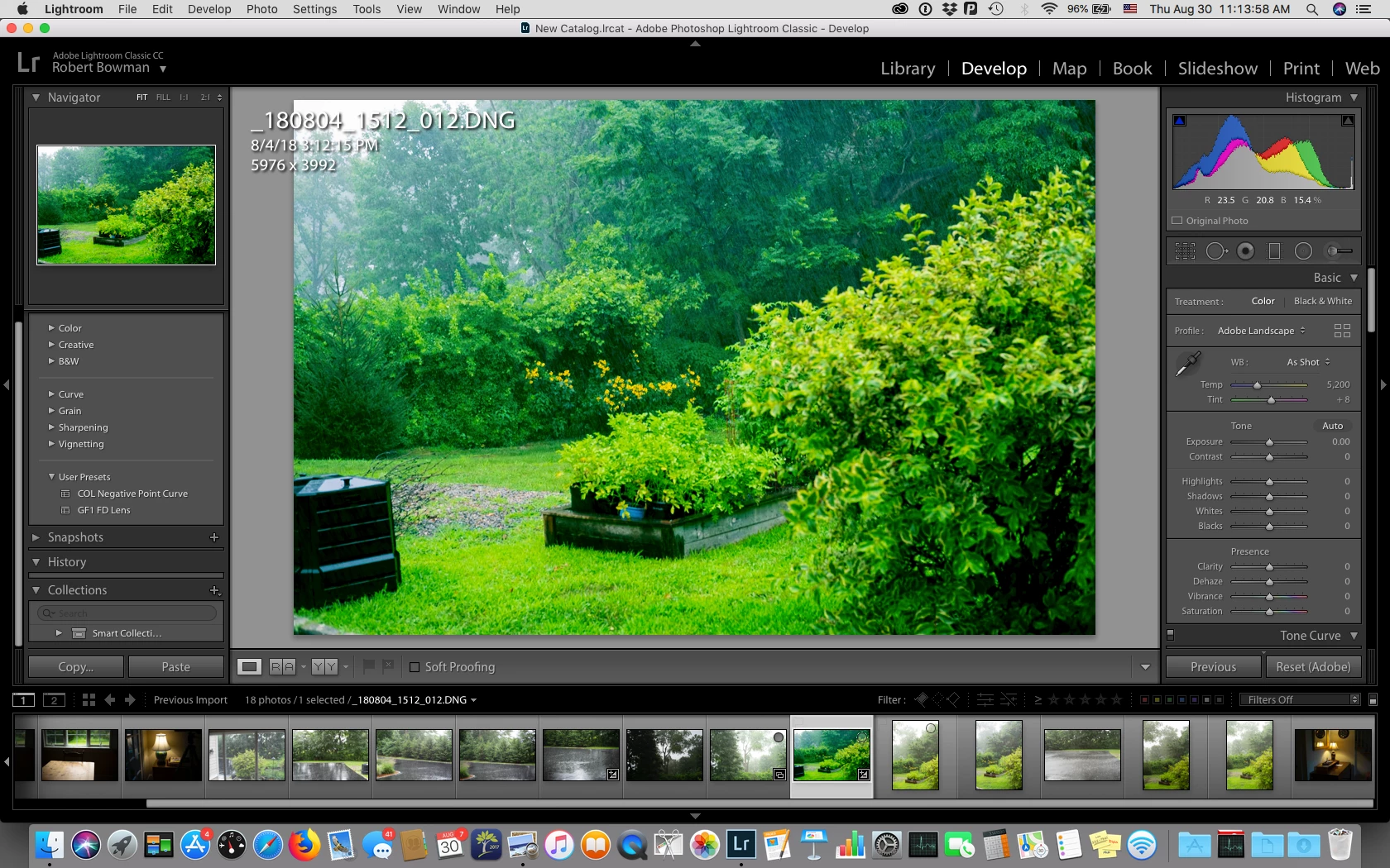 2) Adobe Landscape camera profile has been applied, which is not the normal default setting. What is your default setting for Profile for this and other cameras?