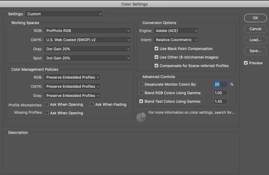 The original was set to 'Adobe Color', after using Photoshop that option is not available and just says 'Color'