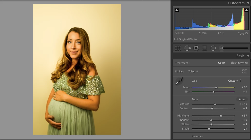 3. Reset the colour to as imported, to be reapplied once finished in Photoshop (I don't want to flatten all of the photographer's colour settings)