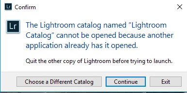 I do not have any other application or copy of Lightroom anywhere that uses my Lightroom catalog. How can I fix this issue?