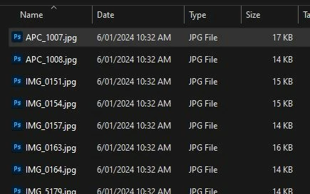 Export the photos as very small JPG thumbnails and create your list from the exported files. Delete the JPG files later.