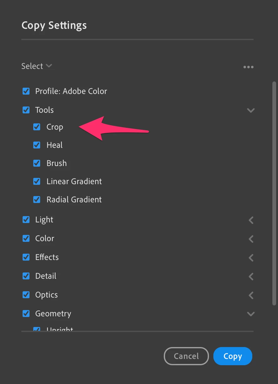 How to bulk sync edits to multiple photos similar to lightroom classic