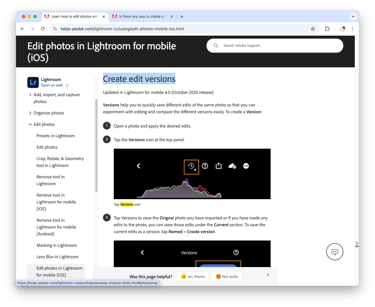 Is there any way to create a duplicate of an image while editing on Lightroom iPad?