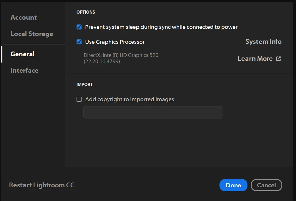 Now, to troubleshoot the issue in Lightroom CC, try unchecking the option "use graphics processor" under the Preferences> General menu: