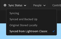 Clicking on "Synced and Backed Up" with show you all the images that are in the cloud in full original format, i.e. taking up space in your allowed cloud storage. "Synced from Lightroom Classic" will show you all images that have been synced from Classic and so are only in Smart Preview format in your cloud space, which do not count against your cloud storage allowance.