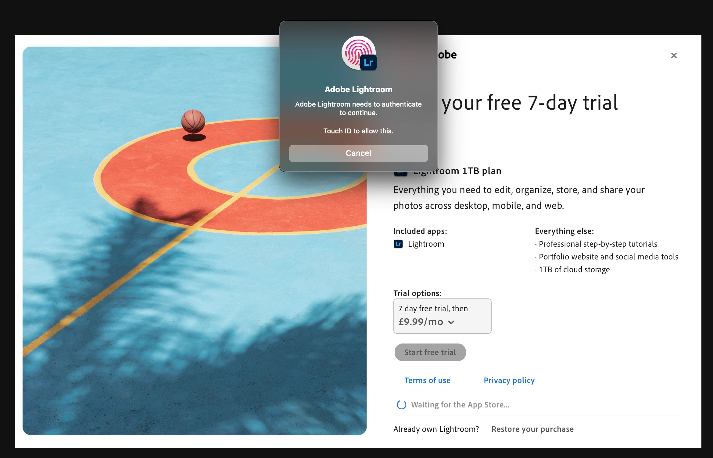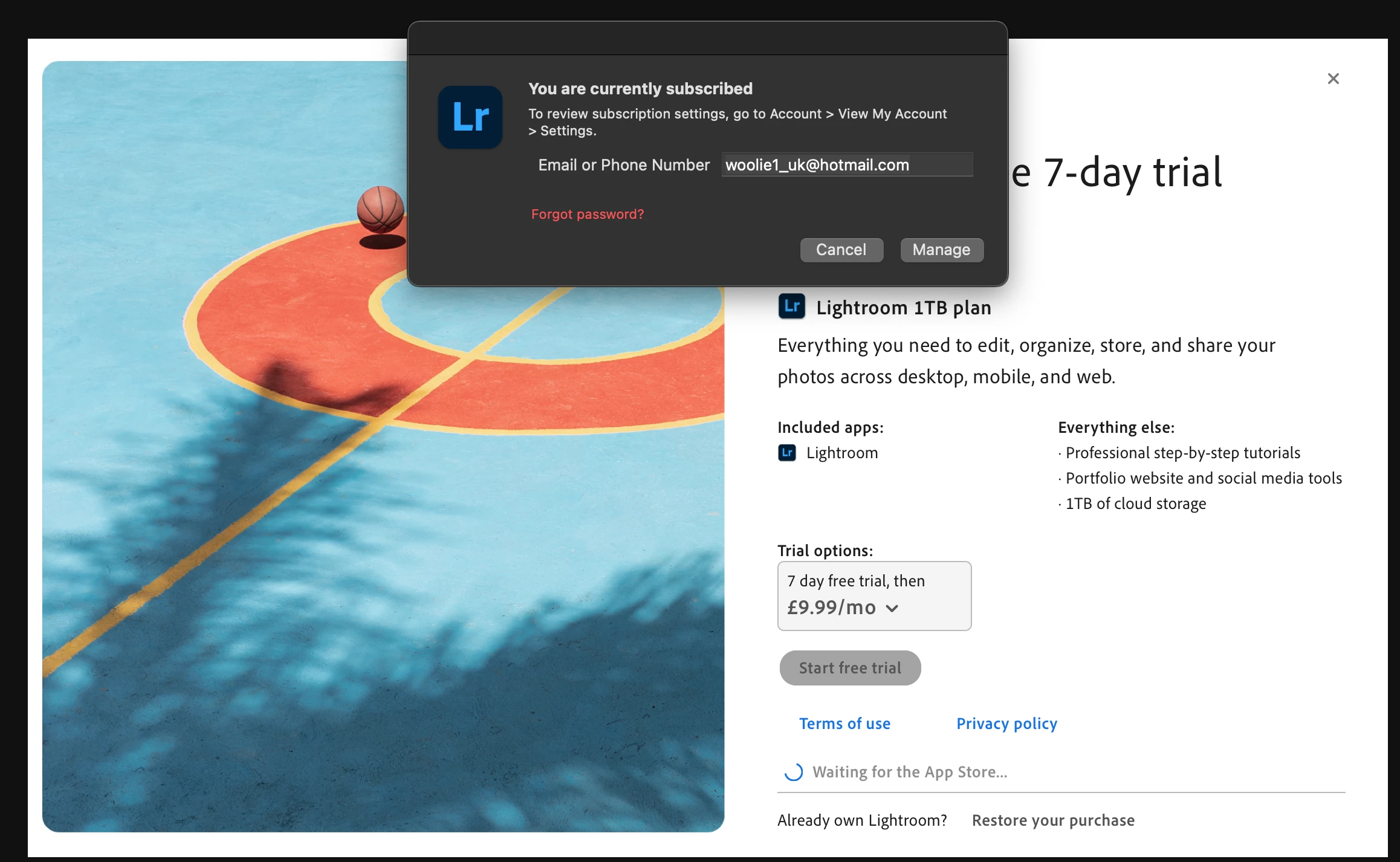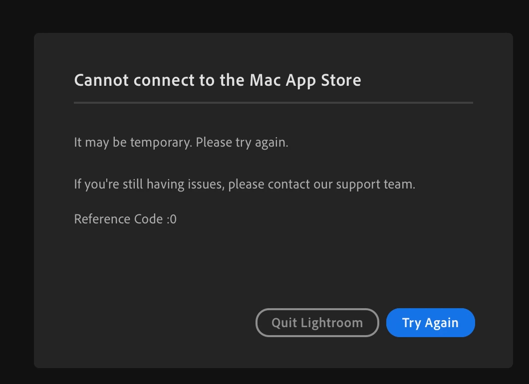 Lightroom will not connect to Mac app store - stuck