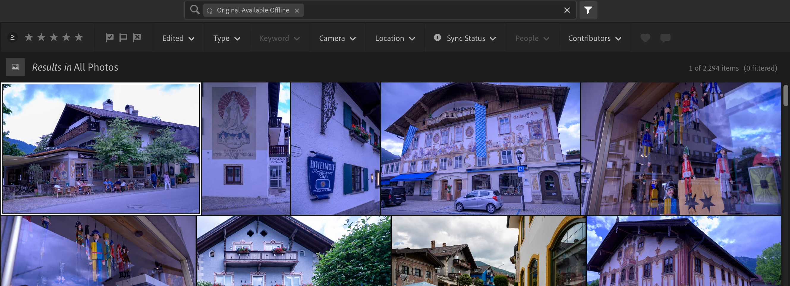 Filtering for "original available offline" in all photos under sync status seems to be the right thing to check here ...