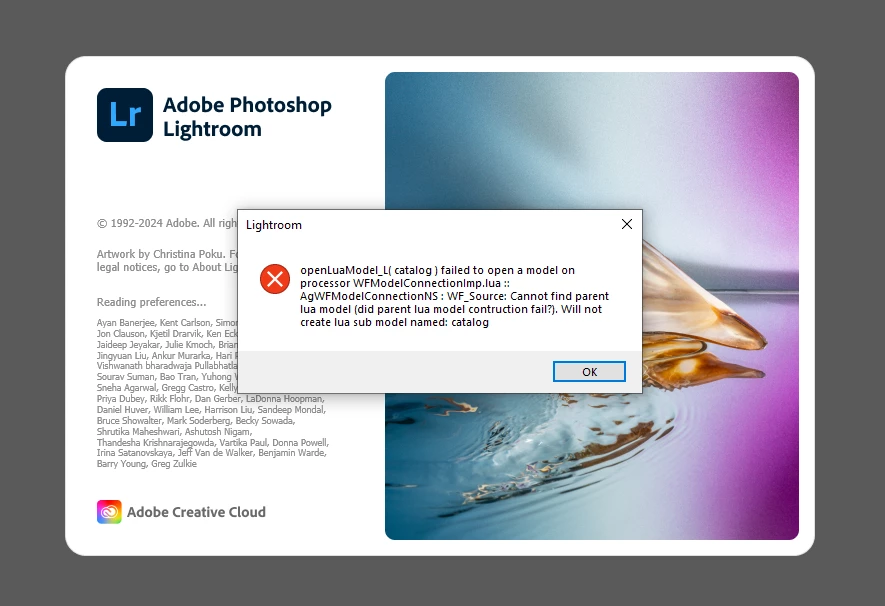 I recently updated Windows and I tried to launch Lightroom. I continue to get this error and I cant for the life of me find a fix online. Was wondering if anyone else has encountered this issue and has a fix for it. Running Windows 10.