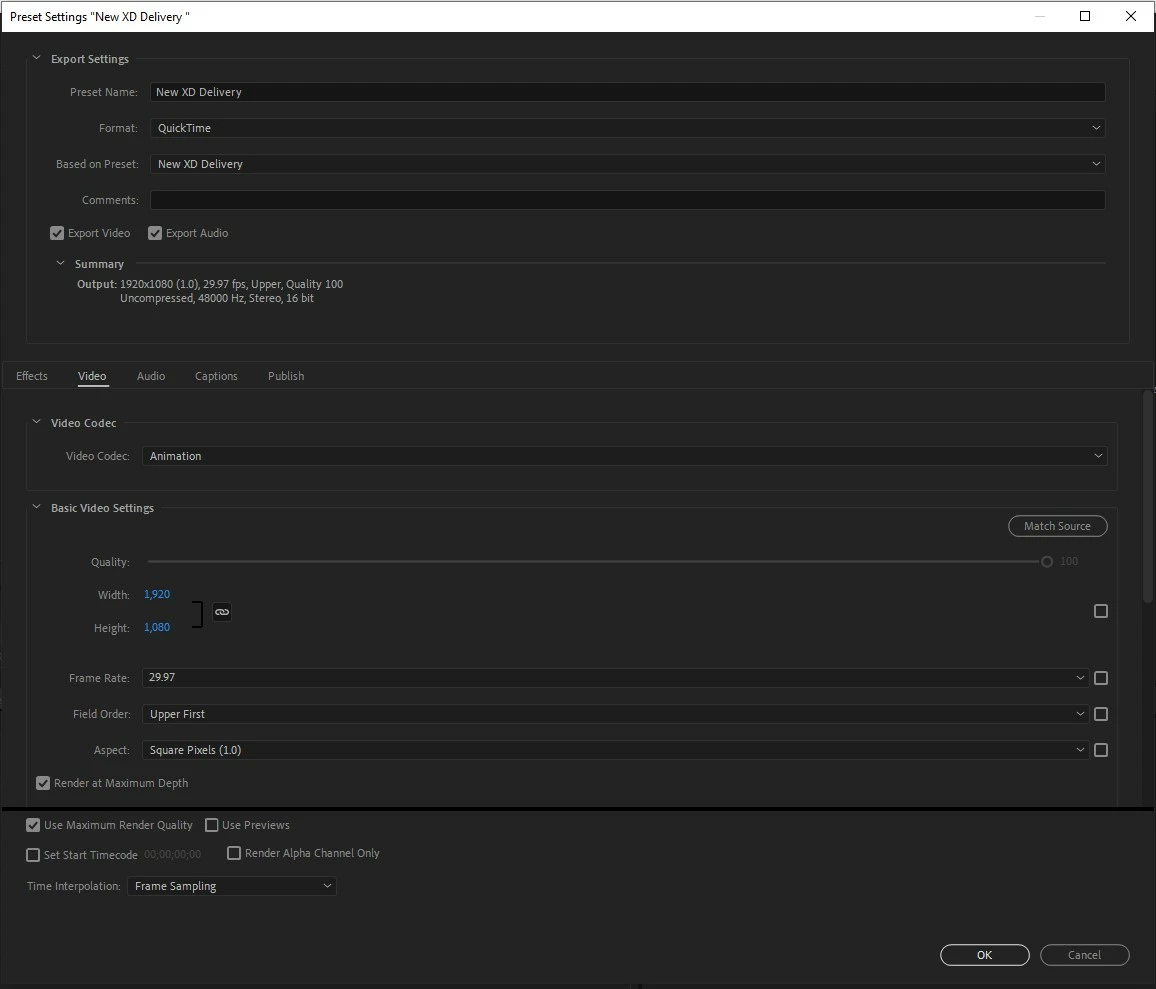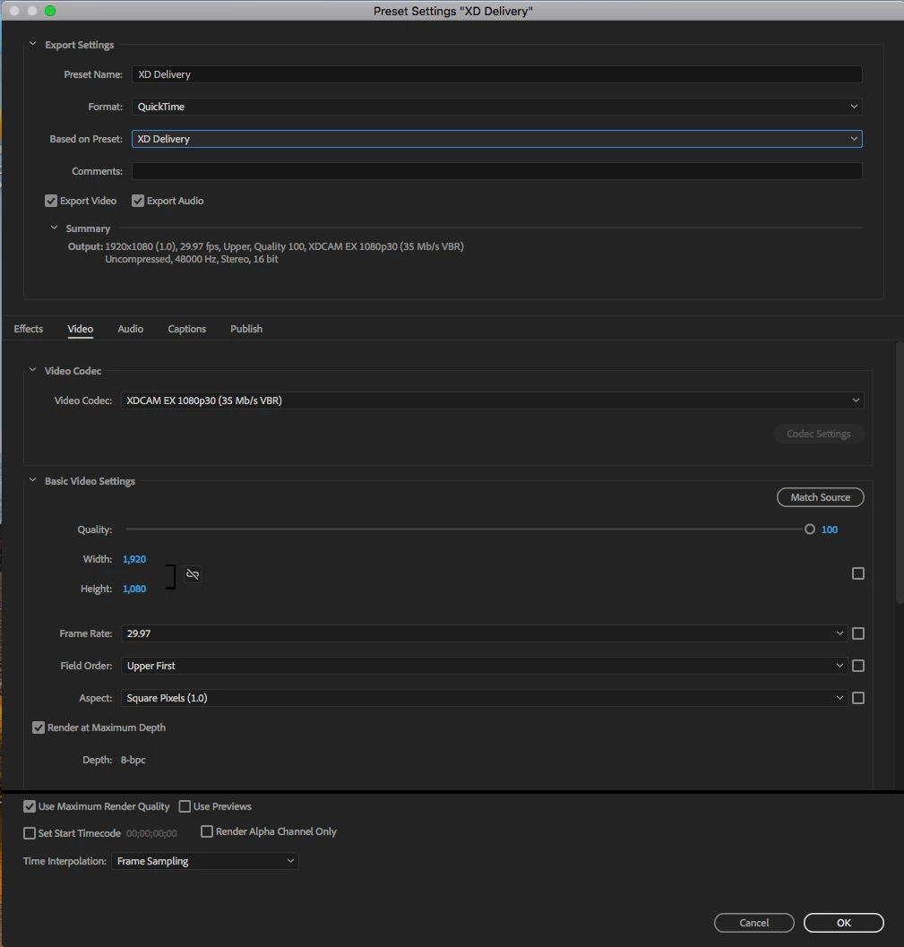 It changes the codec to animation and isn't even an option under the drop-down menu. I know XD CAM is under MXF Codec but we find this preset to be the most reliable for our server. Also whoever came up with this preset was before my time.