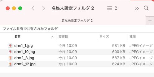 テスト用にJPEGをいくつか用意しました。拡張子の前の数字が画質のメモです。