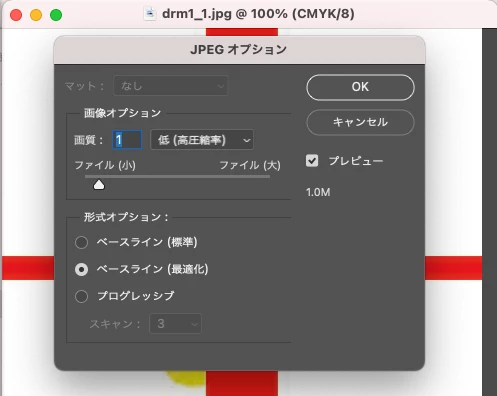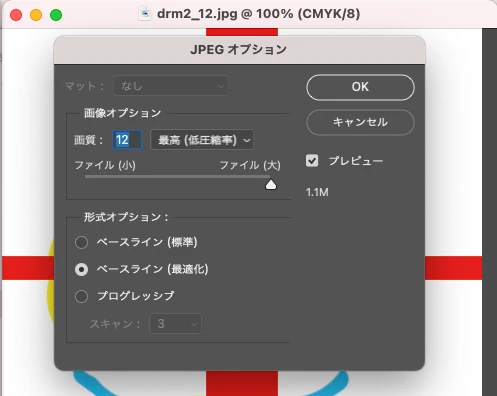 基本的には最高画質で保存するようにアクションを組んでいるはずなのですが、たまにjpegオプションの画質が下がっている場合があって困っています。