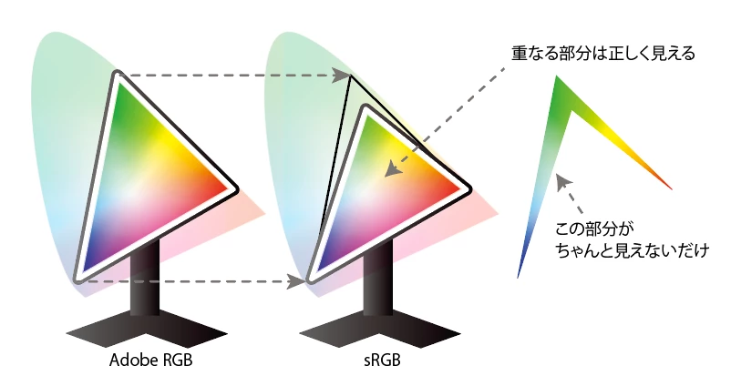 ・編集→カラー設定→「作業用スペース」の「RGB」は、上記「ドキュメントのプロファイル(=変更後のカラースペース)」がadobeRGBの場合でも、元々の設定である「sRGB」のままです。この「作業用スペース」はモニター(それが表示できるポテンシャルがあるモニターであれば)に「adobeRGB」や「sRGB」にて表示します、という事なのでしょうか?また、この「作業用スペース」と「ドキュメントのプロファイル(=変更後のカラースペース)」の違いは何でしょうか?