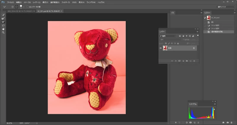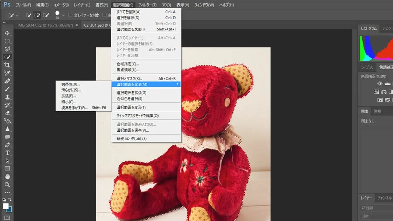 1)「クイック選択」ツールでぬいぐるみを選択しました。