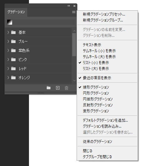 従来のグラデプリセットはどこに?