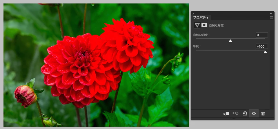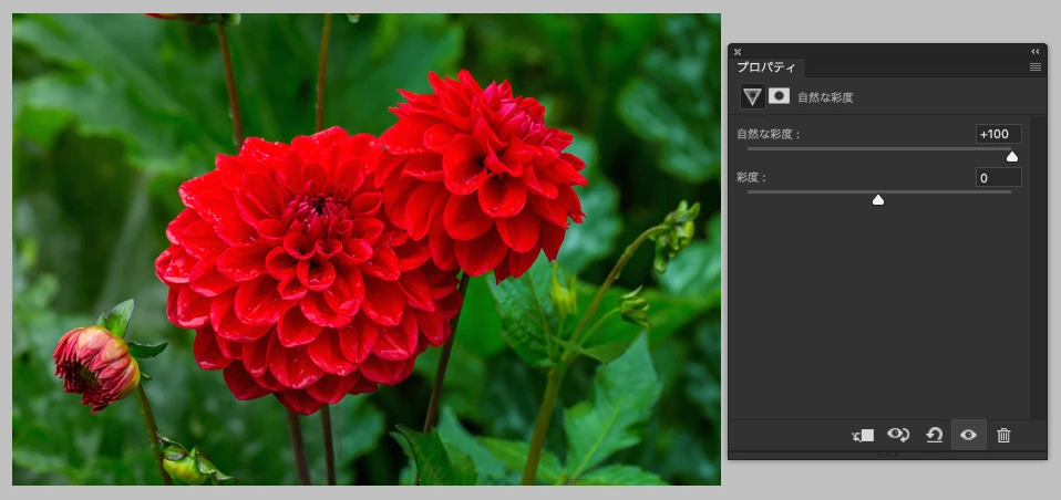 自然な彩度はほとんど変わっていません。彩度は、花部分のディテールが失われていることがわかります(彩度の飽和)