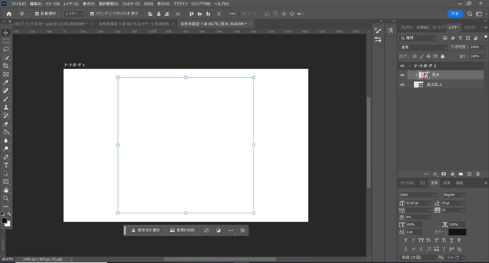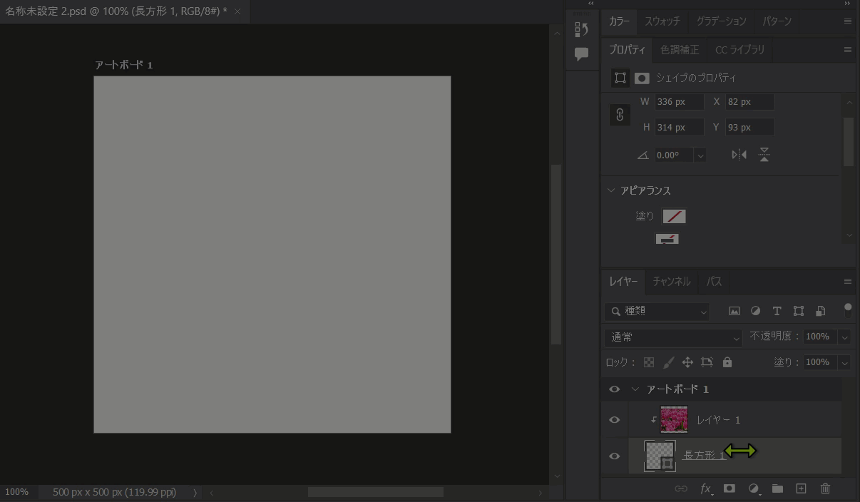 レイヤーの順番は(上)切り抜きたい素材 (下)切り抜く長方形 に設定しております。