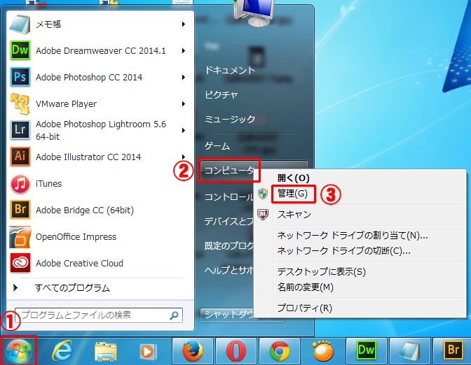 2) コンピュータを右クリック