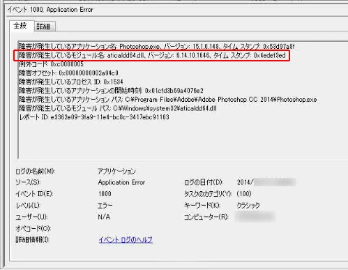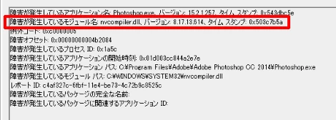 ・障害が発生しているアプリケーション名=【Photoshop.exe】になります。
