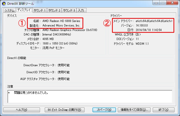 2) グラフィックカード(グラフィックボード)=GPUのドライバー情報(バージョン・日付)