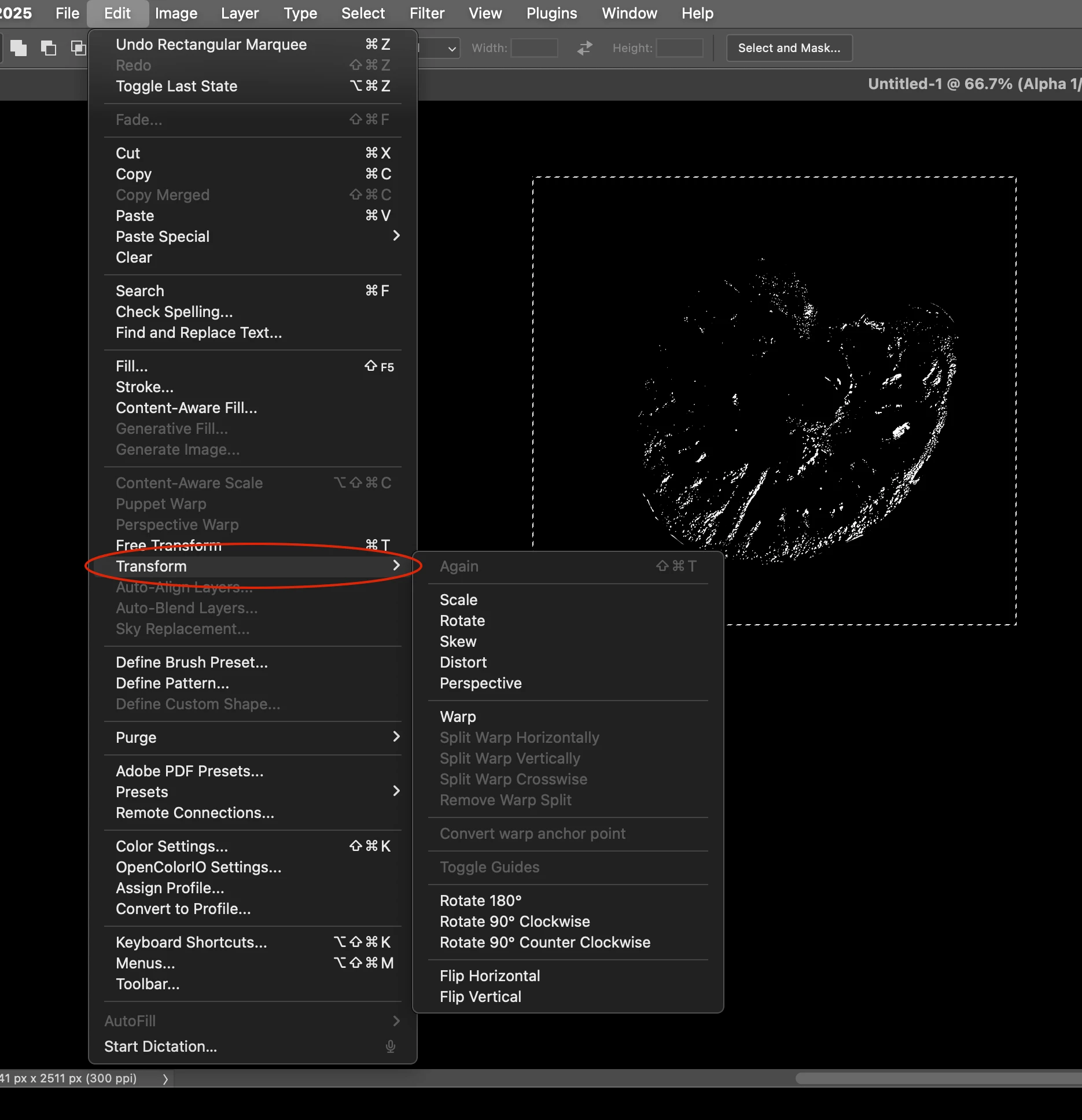 I'm trying to flip a selection in an alpha channel but the Transform menu item isn't available and greyed out. I've included two screenshots comparing the same action in 26.2 Beta compared to the current 26.1 release.