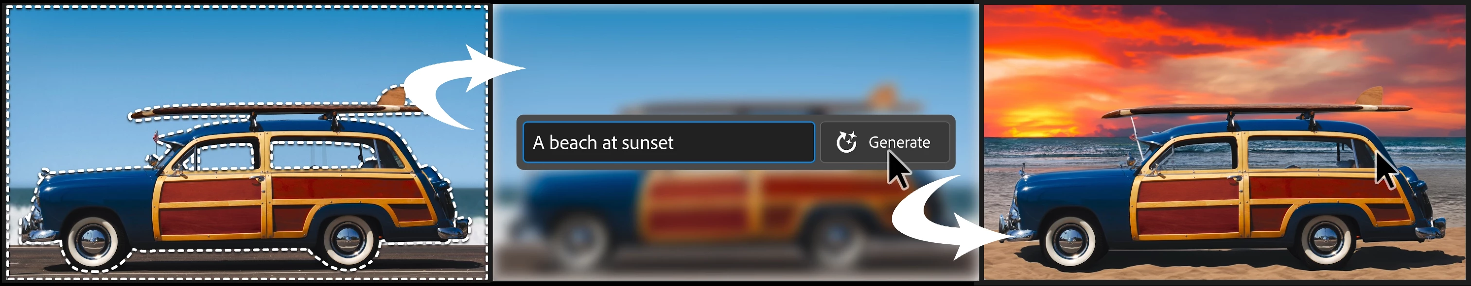 Generate backgrounds: Select the background behind your subject, then generate a new scene from a text prompt.