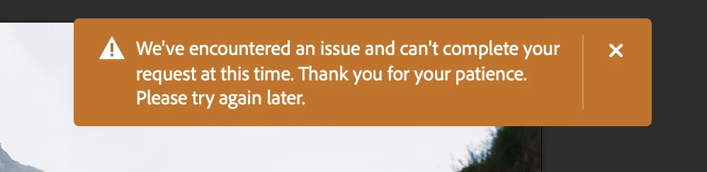 Hi, I keep getting an error message when try to use Generative Fill "We've encountered an issue and can't complete your request at this time. Thank you for your patience. Please try again later."