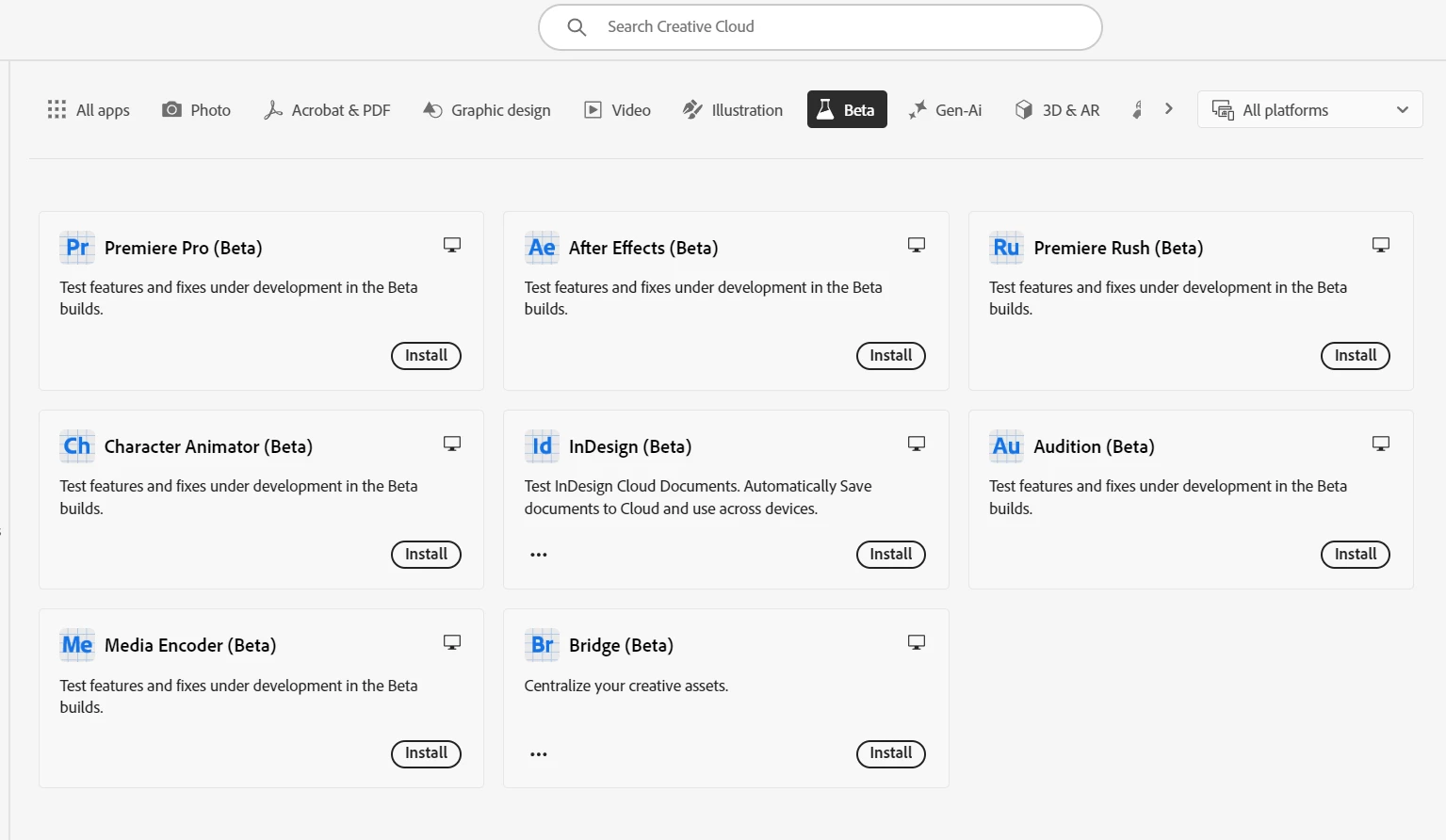 when i oopen the creative cloud..i dont see the photoshop beta version to install..i have other software beta ( image attached). What is the issue? and how to download the photoshop beta app?