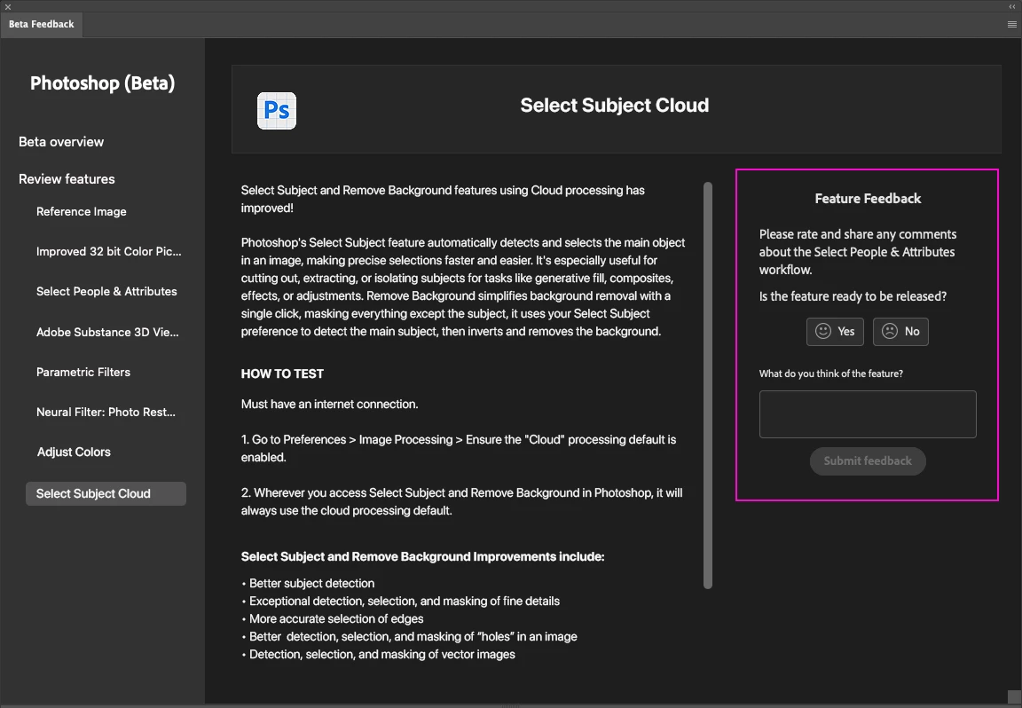 Select Subject and Remove Background features using Cloud processing has improved! (Beta)