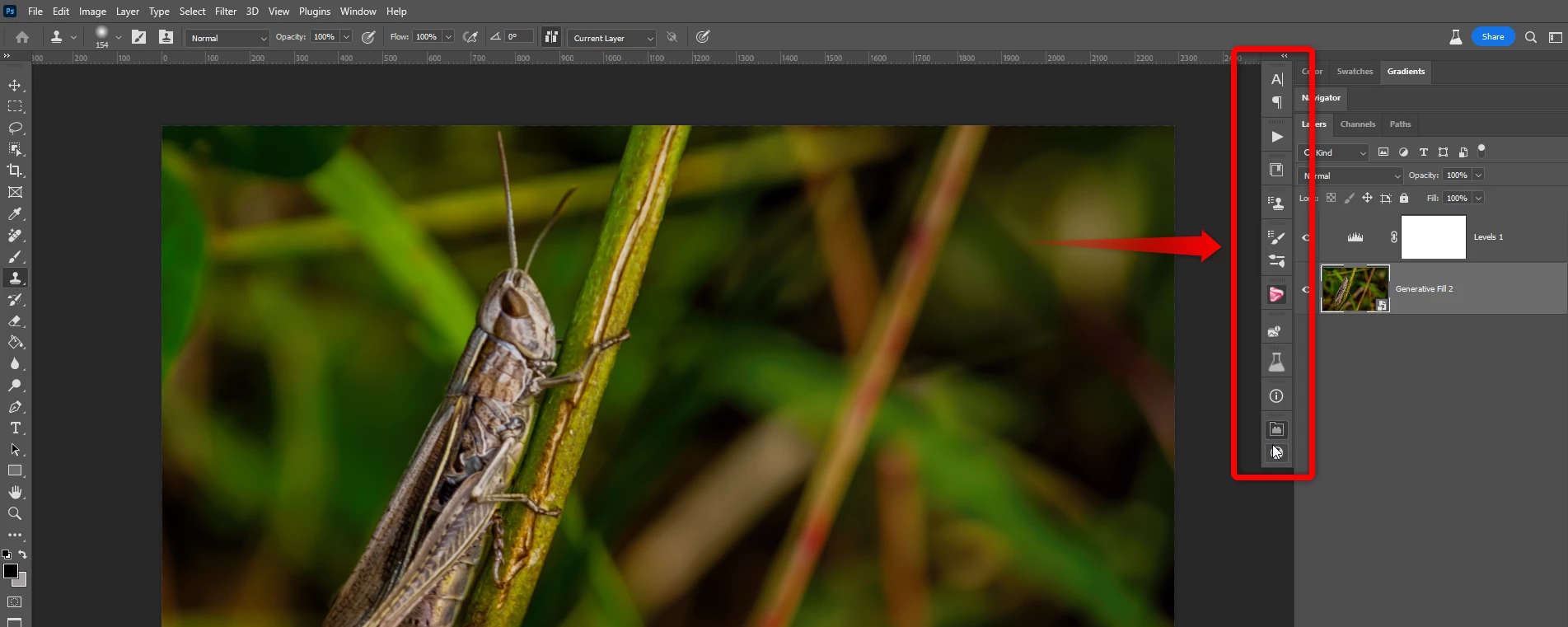 Try resetting the workspace and a fresh launch of PS?
