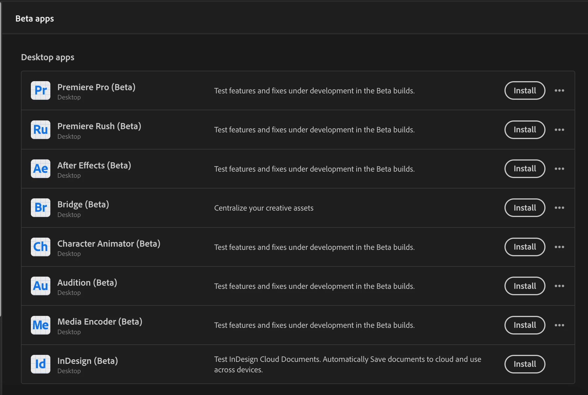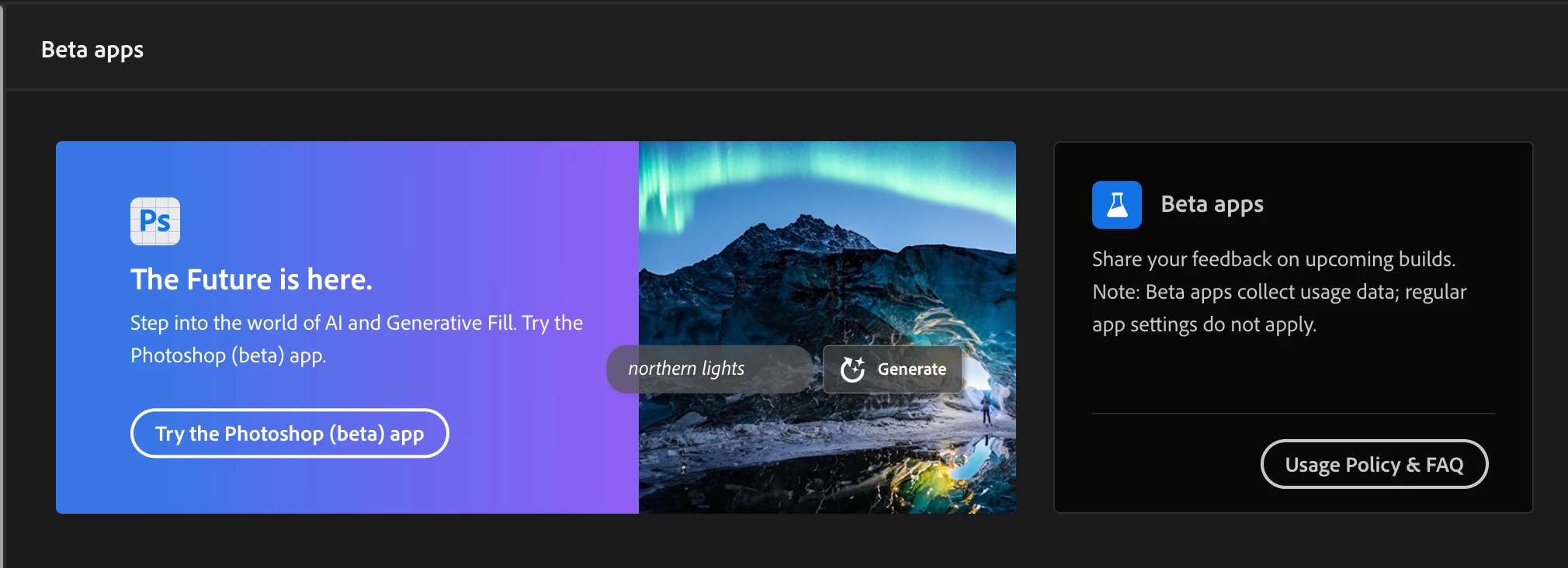 I tried to update Photoshop Beta to 25 from 24.7.0 but could not see the 25 version in my CC, so I uninstalled and reinstalled CC hoping to fix it. Instead, I now don't have Photoshop Beta in my list of apps to install in the Beta tab of CC. There is a box above asking me to try it out, but when I click on the link nothing happens. Probably because it is still installed on my desktop and I can't uninstall if I wanted to, 'cos that option isn't available either.