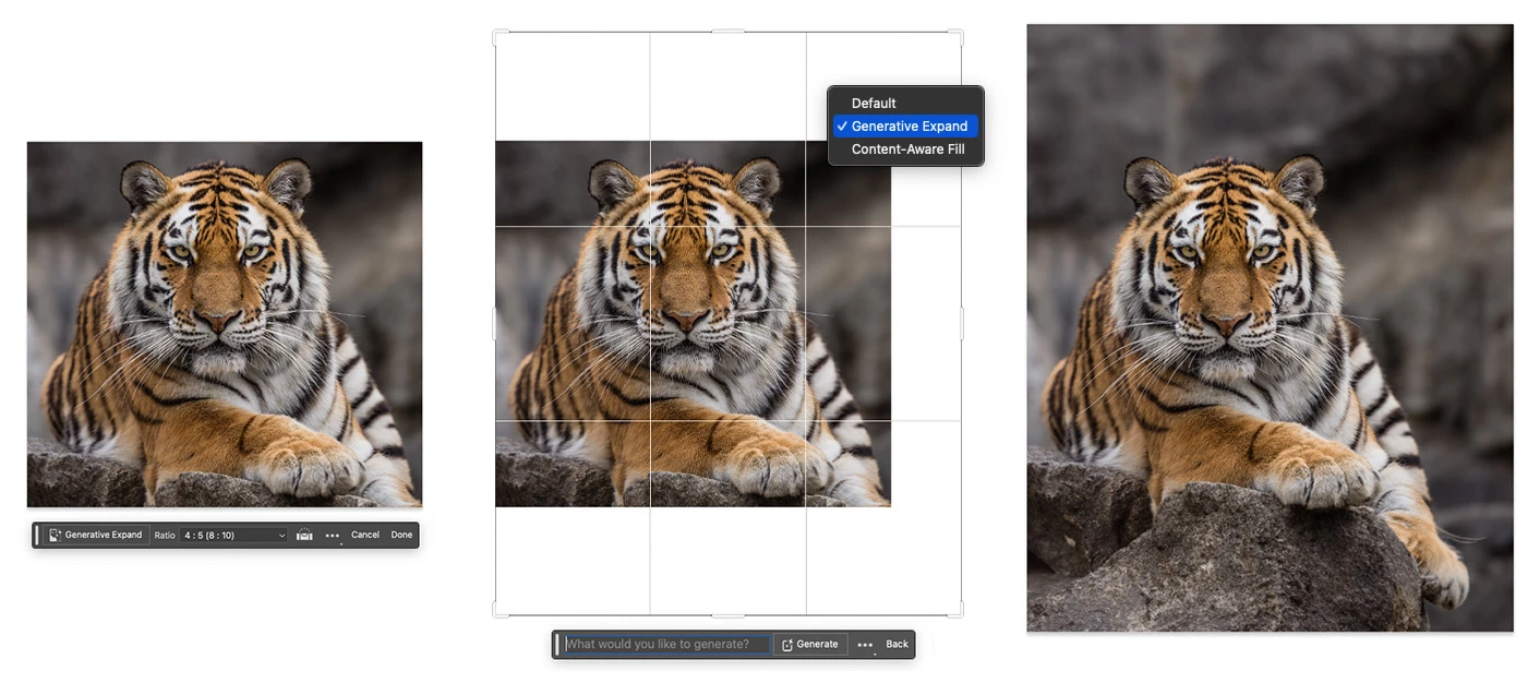 Extend your image and recreate it in line with your imagination. Use this feature, located inside the Crop tool, to expand your canvas and generate multiple versions of the expanded image, with or without simple text prompts, all in a matter of seconds.