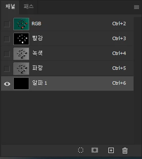 • 채널을 클릭하고 오른쪽 하단의 +를 클릭하여 알파 채널을 만듭니다